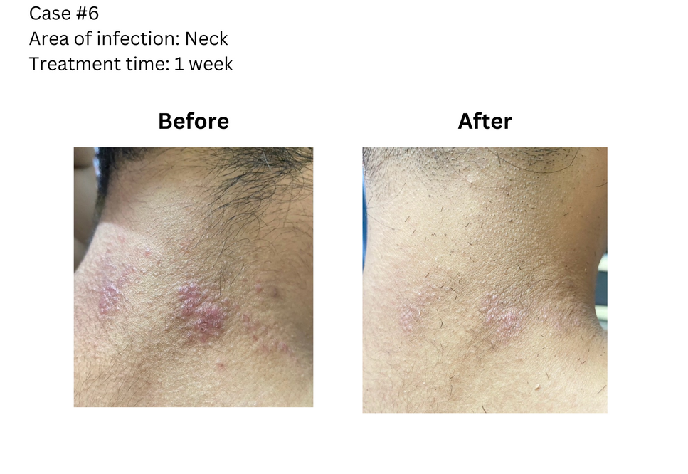 Botanica worked in collaboration with the head nurse at the Mercy Centre to closely track the treatment progress of residents in the Khlong Toei slum. Prior to capturing any photos of their skin, patients provided their consent for the documentation. The trials showed notable improvements in the skin conditions of patients. Patients reported reduced itchiness, dryness, and inflammation without experiencing the side effects associated with previous steroid treatments. The trial not only demonstrated improvements for fungal infections but also for other conditions such as rashes and eczema.